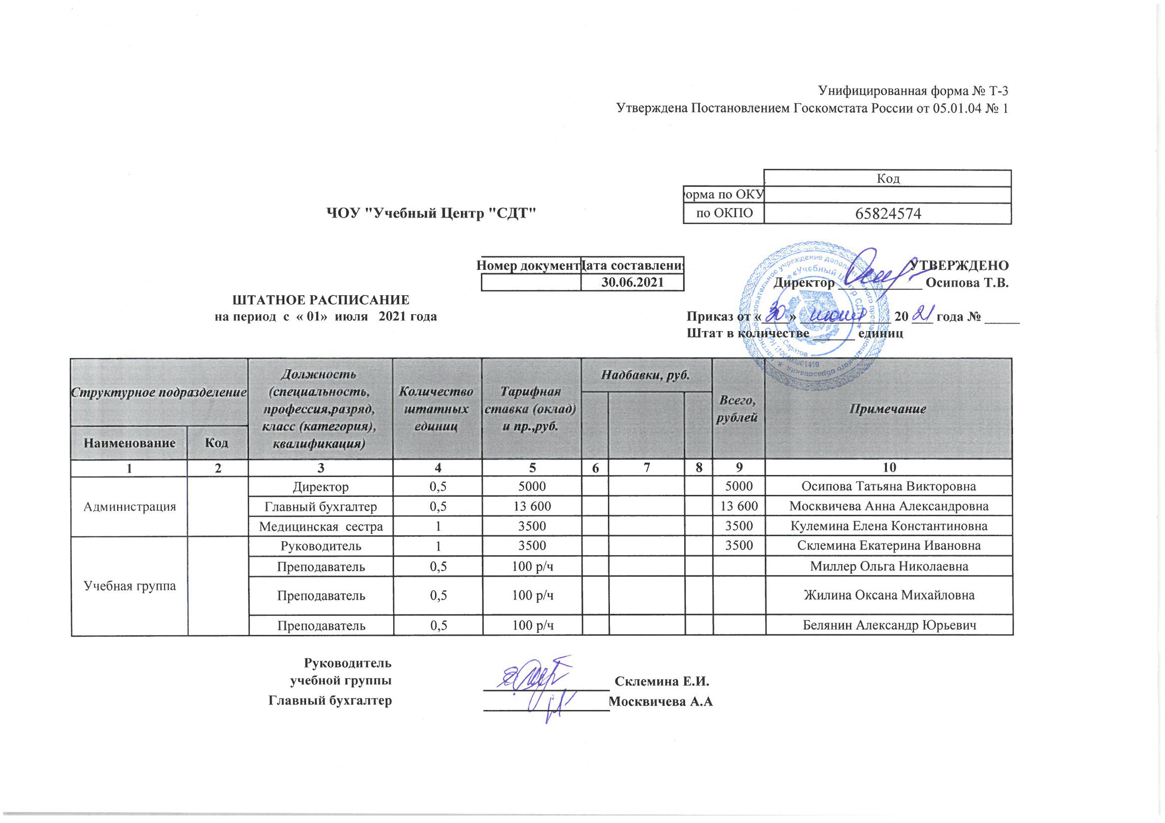 Должностная инструкция директораДолжностная инструкция бухгалтераДолжностная инструкция руководителя учебной группыДолжностная инструкция преподавателяШтатное расписание